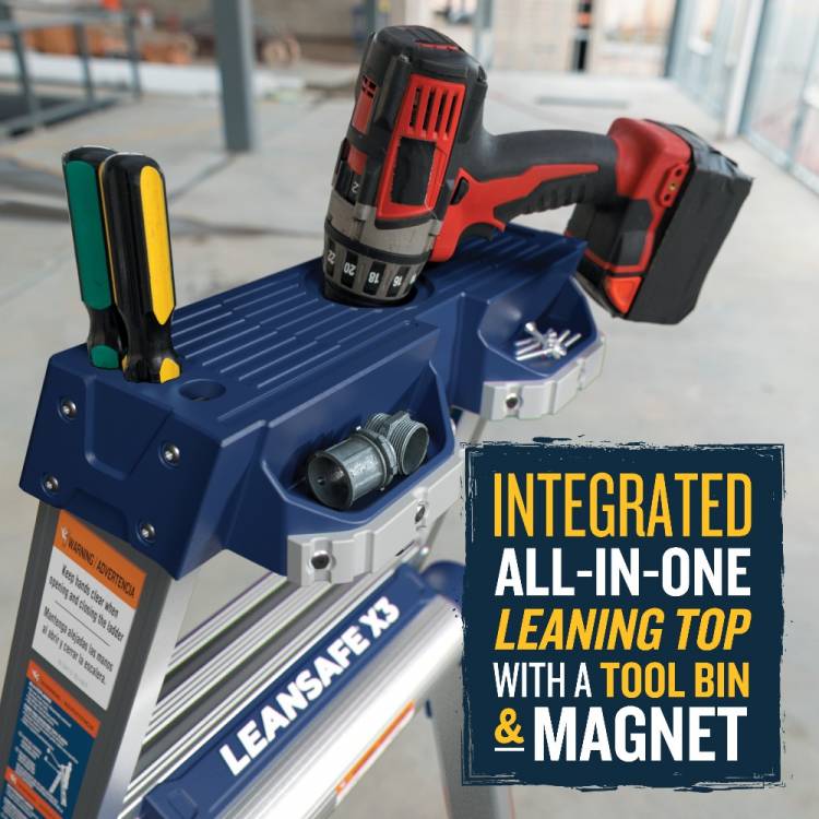The LEANSAFE X3 aluminium ladder is a professional 3 in 1 multi-purpose ladder that quickly changes from a leaning ladder to a step ladder or extension ladder with one-handed adjustment system. The unique top is specially designed to securely lean against wall corners, studs, poles and flat wall surfaces when using as a leaning ladder. This ladder designed with a compact rear section that fits between standard framing studs when in step ladder mode enabling you to get closer to the work. To change to an extension ladder, simply squeeze the one-handed adjustment system to flip the rear section up. The ladder with safety grip wall bumper provides firm grip for pole or corner leaning. The integral tool tray keeps tools organised and limit trips up and down the ladder. This lightweight and versatile 3 in 1 aluminium ladder is great for all types of jobs around the work site. Approved to the latest EN131 standard. For Professional Use.