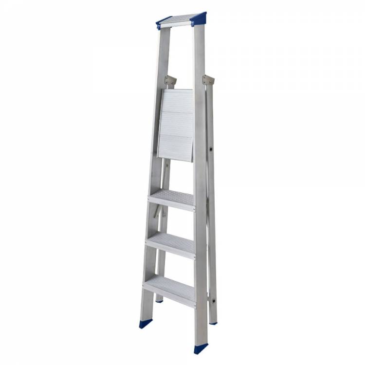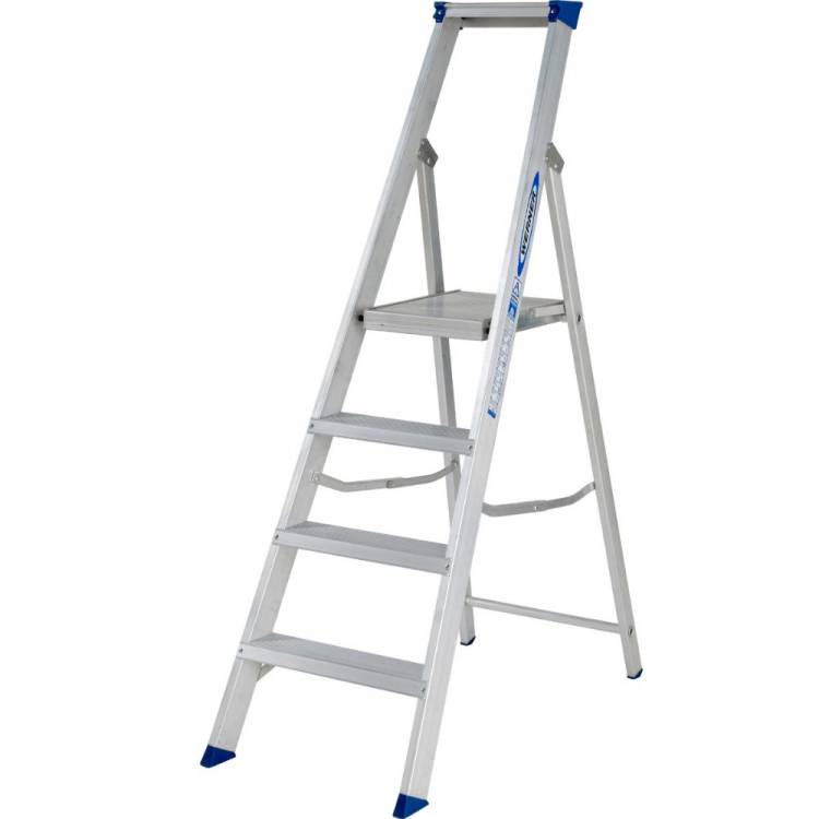 The 7150418 4 tread MasterTrade⢠Platform Stepladder is the traditional builder's ladder engineered using high grade aluminium box section stiles and heavy gauge plastic edge caps for a smoother profile. With a large platform, heavy duty internal spreaders, rear frame cross tubes and large slip-resistant feet, this ladder is exceptional robust and built to last. Approved to the latest EN131 standard. For Professional Use.