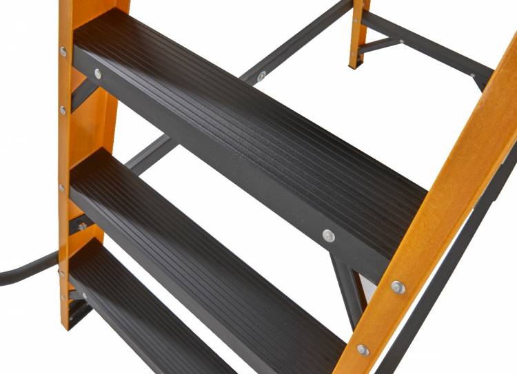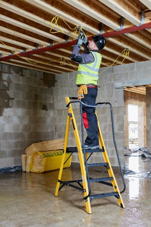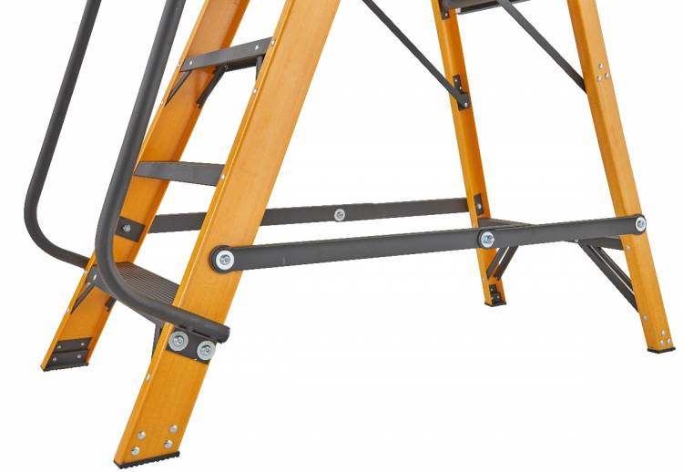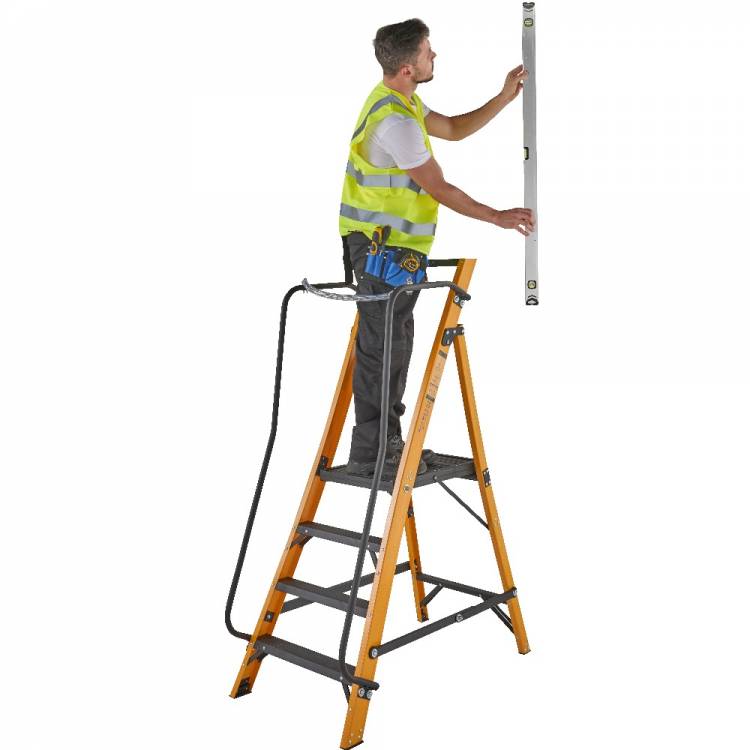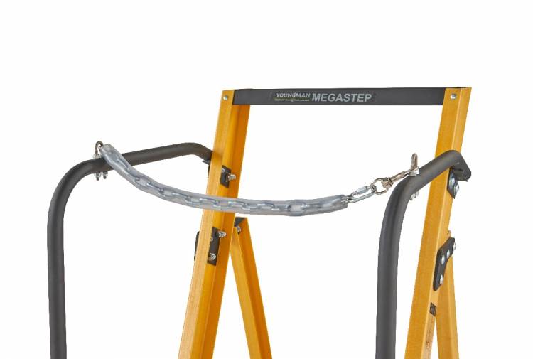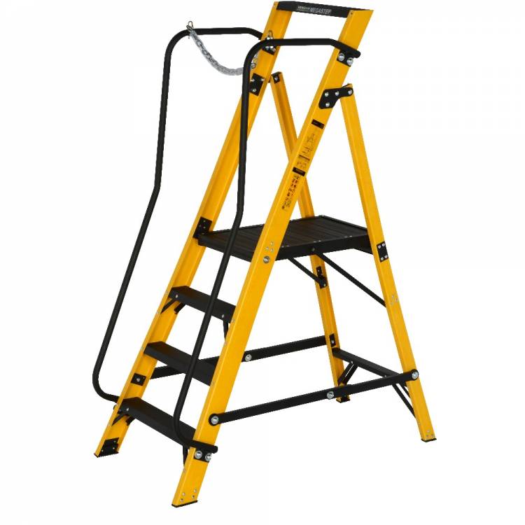 The 30090418 4 tread Megastep is constructed using durable, non conductive, fibreglass rails that are highly resistant to weathering. This ladder includes twin handrails for safety when climbing the ladder and a safety chain to enable 360° protection when working on the platform. A platform height of 0.85m enables a safe working height of 2.60m* so this ladder is ideal for any job around the worksite. Conforms to the new EN131 standard. Suitable for Professional Use.